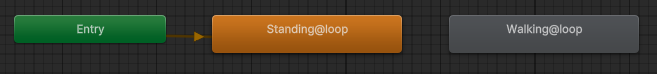 Standingで右クリック「Make Transition」からWalkingにつないで、歩き始めたらWalkingに移動する