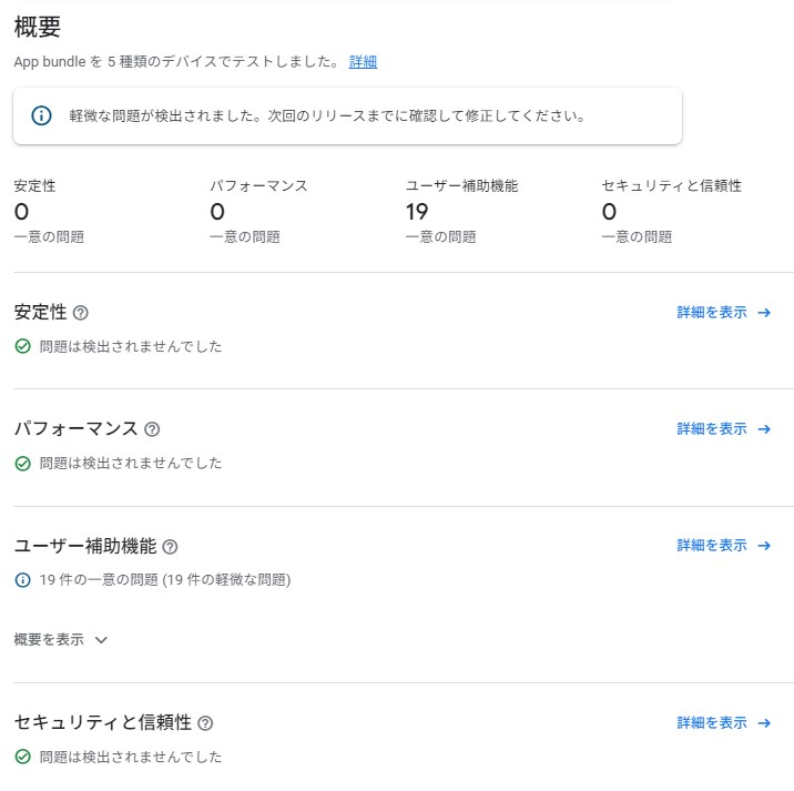 19個の軽微な問題ってことでが、「詳細を表示」で細かい内容が載っていました。
