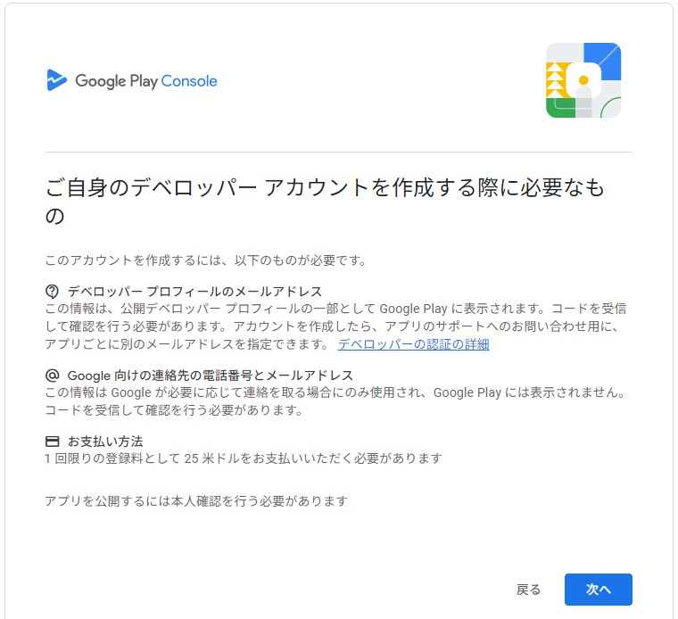 - Google Playに表示するデベロッパープロフィールのメールアドレス