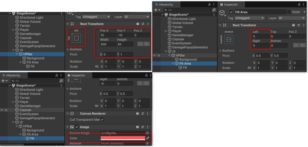 シンプルですね。今の時点では、凝った作りにしませんが、あまりに味気ないのとSliderのValueが0の時に少しゲージが残っているので少しだけ修正します。以下のアセット使って少し装飾します。