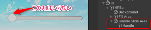 Handleの〇は、必要ないので削除します。Handle Slide Areaを削除します。