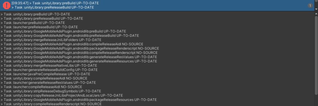 > Task :unityLibrary:GoogleMobileAdsPlugin.androidlib:syncReleaseLibJars UP-TO-DATE