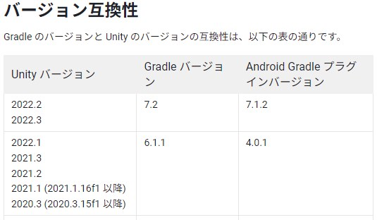 The following table shows compatibility between Gradle version and Unity version.