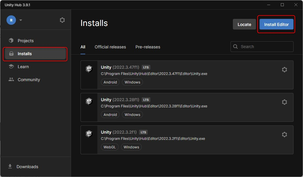 Installsの「Install Editor」を選択