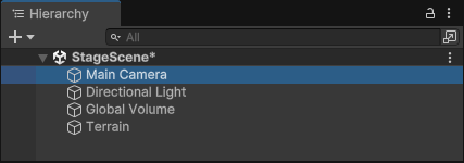 カメラヒエラルキー(Hierarchy)で、対象のカメラ(ここではMain Camera)を選択する