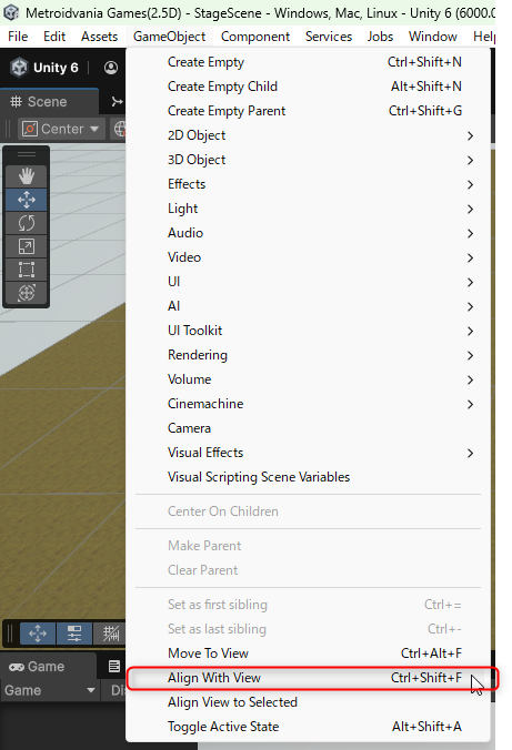 GameObject > Align With View