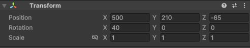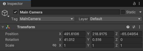 Inspectorの値を微調整する。Sceneビューは手動で設定したのでRotationがすこしかたむいてるので、気になるようであれば調整する